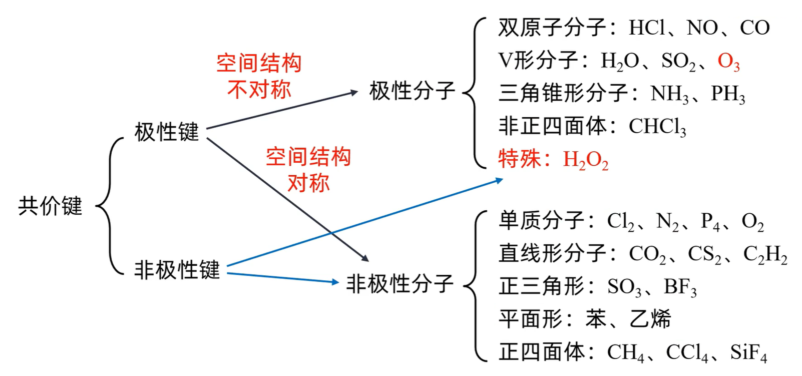 1. 只含非极性键 的分子一定是非极性分子